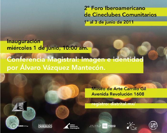 Imagen para promocionar la segunda edición del Foro Iberoamericano de Cine Clubes Comunitarios 2011 en el marco del festival DISTRITAL