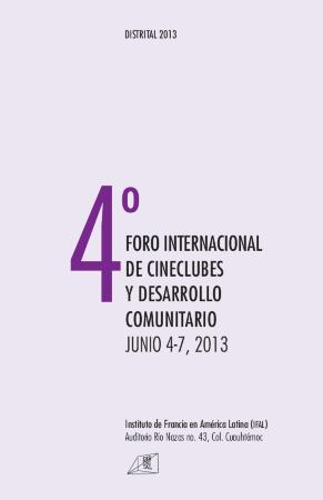 Se trata del programa del 4º Foro Internacional de Cineclubes y Desarrollo Comunitario, que tuvo lugar del 4 al 7 de junio de 2013, como parte de "Distrital. Cine y otros mundos".